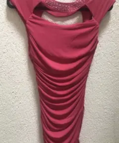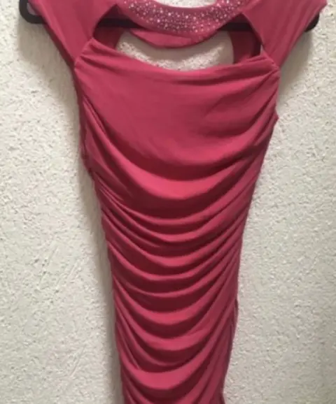 Vestido de noche. Drapeado, ajusta perfecto la figura, manguitas con hombreras y cuello adornado, poco uso tiene un jaloncito que no se nota