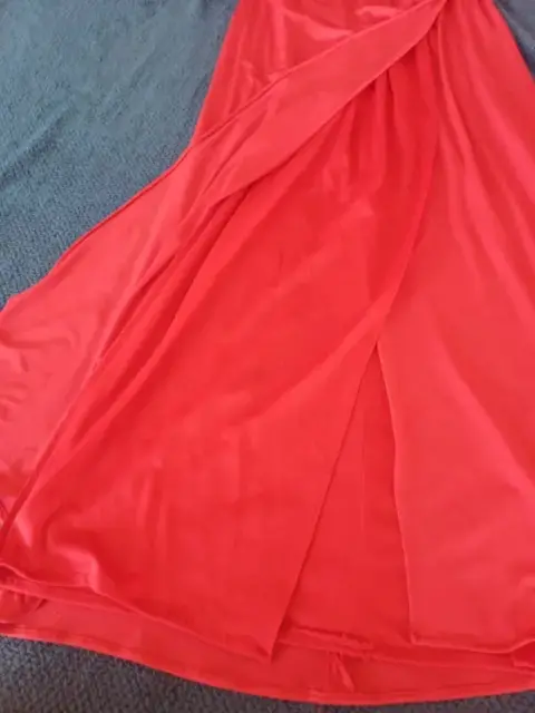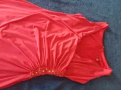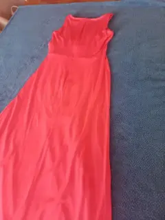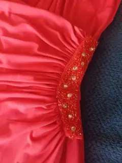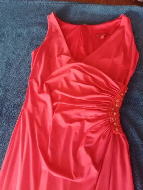 Vestido de noche color coral con detalle al costado, Con forro del mismo colo. Talla Chica, Liz Minelli