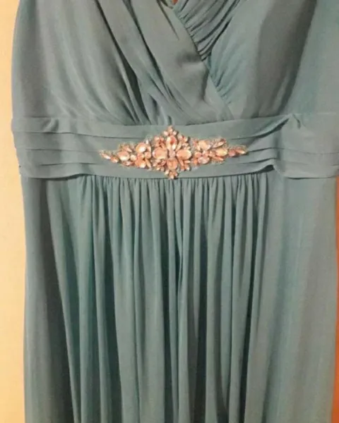 Vestido de noche color menta. Hermoso vestido color menta con diseño en la cintura de piedras talla LEl color del vestido es como en la primer foto