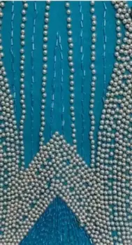 Vestido de noche con pedrería. Hermoso y elegante vestido largo de noche, color azul turquesa de gasa con pedrería en blusa y mangas en excelentes condiciones, sin detalle, precio negociable