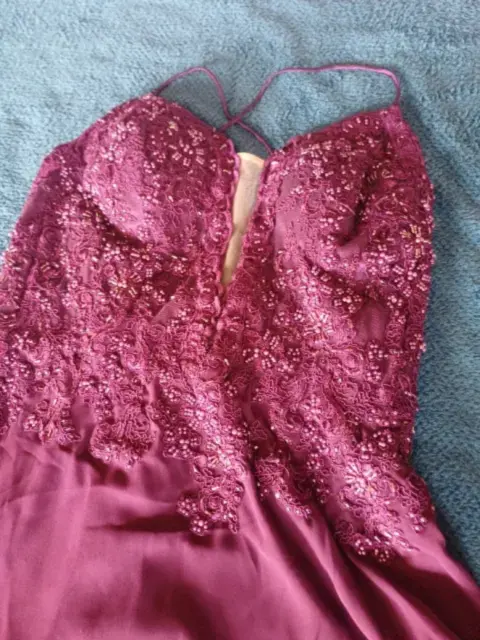 Vestido de noche, color uva, con forro y copas invisibles, lentejuelas en la parte superior y falda, corte A muy amplio, Dama Petite, hermoso, nuevo e impecable. Ideal para unos xv años o boda,
