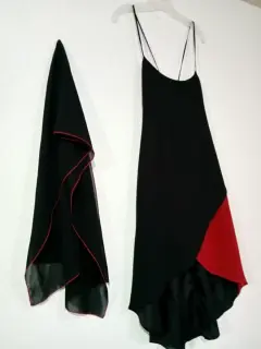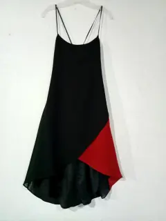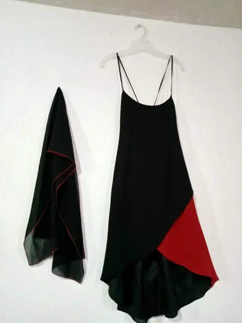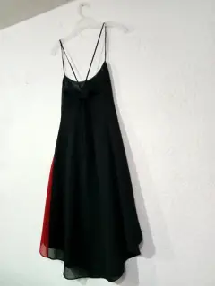 Vestido de noche dos colores talla 9 poliester.usado en buenas condiciones trae una frada de color negro orilla roja