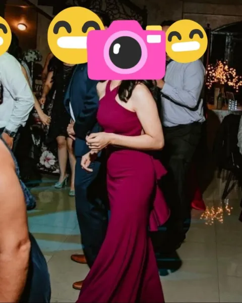 Vestido de noche escotado. Realza tu bella figura con este hermoso vestido de Liz Minelli, tela tipo stretch super ajustable.Escote trasero. Tono magenta.Ajusta talla S-M
