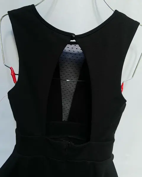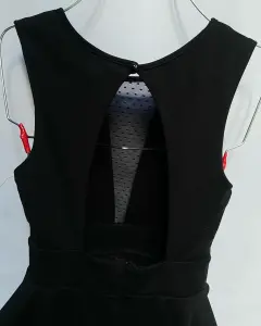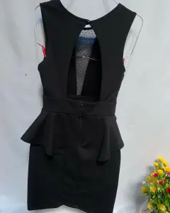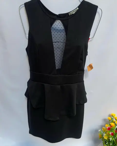 Vestido de noche, escote redondo, transparencia en la parte de enfrente. Pinza de busto en corte francés, corte a la cintura, pretina en cintura y olan sobre el falda lápiz. Botón en la parte del cuello de la espalda y cierre invisible. Talla: S (26-28) Marca: Charlotte Russe.