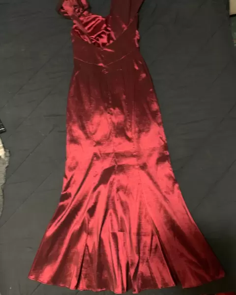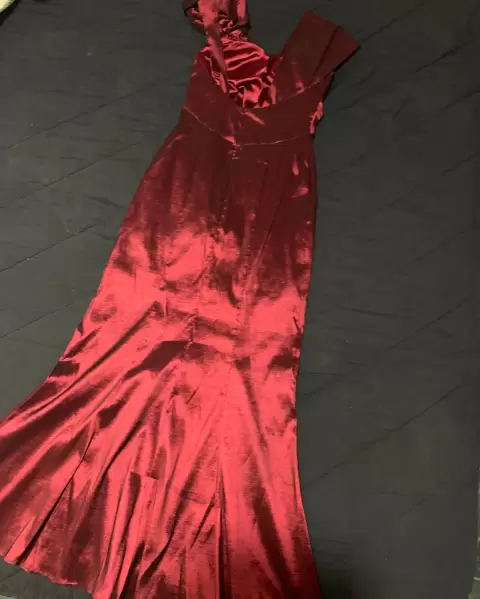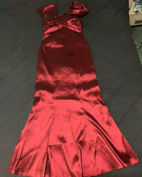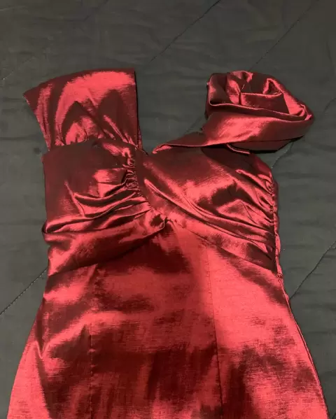 Vestido de noche color rojo quemado, talla 4, semi nuevo, tela strech, tiene un diseño muy original, en un hombro tiene una rosa grande como lo puedes ver en las fotos, muy elegante