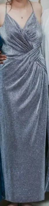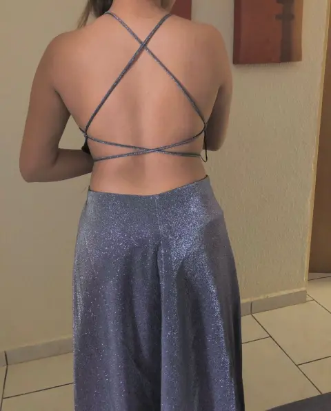 Vestido color morado, largo, con apertura al frente, espalda descubierta, excelente estado, talla mediana 6