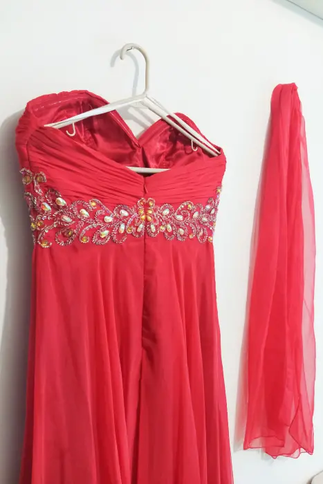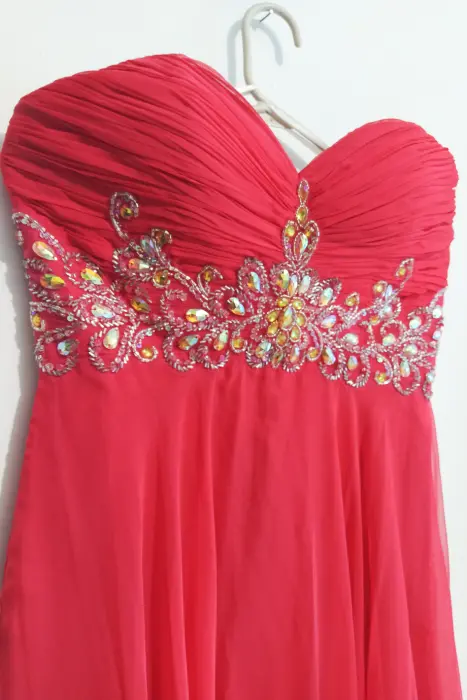 Vestido elegante para fiesta de noche, graduación, boda, xv, etc.Color coral. Talla 12Medidas: Pecho: 45 cm (frente) 40 cm (detrás), Cintura: 40 cm (frente) 37 cm (detrás), Largo: 138 cmSi te interesan varias prendas de mi closet puedo armarte un paquete según tus preferencias 💖
