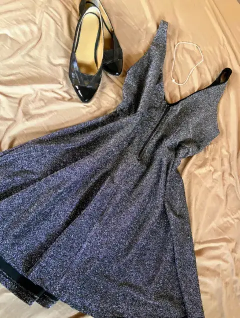 Vestido de noche NICHOLAS. Bonito vestido corto para evento de noche, cuello en v, corte A, talla M, elasticidad.