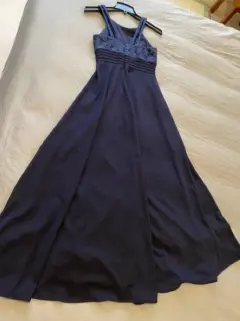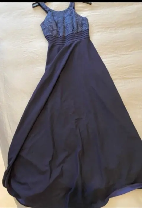 Vestido de fiesta talla 5 en color azul de noche , cuello redondo , aplicación de encaje perfectas condiciones