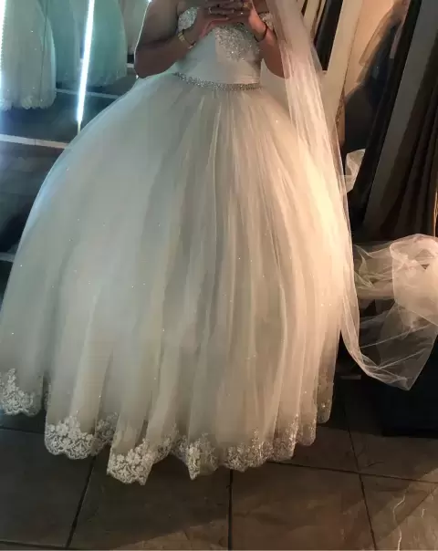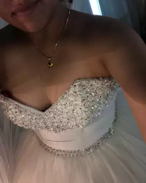 Vestido de novia no cuenta con tintorería ni con velo Es un vestido color Ivory Modelo Romina Con aro flexible y crinolina Sin mangas