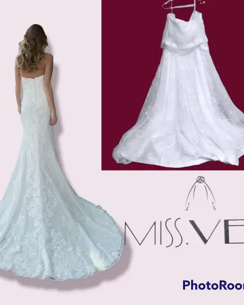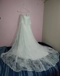 👩❤️💋👨💜Hermoso vestido 👗 de diseñador mandado a hacer a china 🇨🇳 marca Miss Veil, y lo mejor de todo completamente nuevo‼️viene con etiqueta y bolsa (esta rota por el trayecto)Medidas👗120 cm de strapless (al rededor) cuenta con cierre👗119 cm cintura👗149 cm largo (en frente)👗181 cm largo (atrás - cola)Encaje al rededor del straplessAdemás cinta adherible para que no se baje