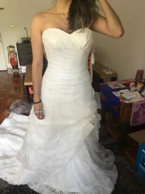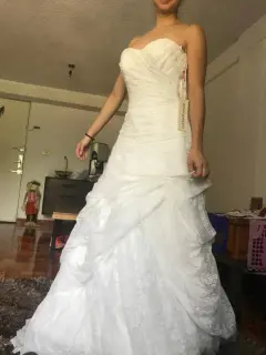 Vestido de novio nuevo. Hermoso vestido de novia nunca usado, marca Brinden Formal. Estilo siglo XIX, color Ivory todo de encaje. Con precio de etiqueta original de 22 000 pesos, talla 10, pero es talla M o CH