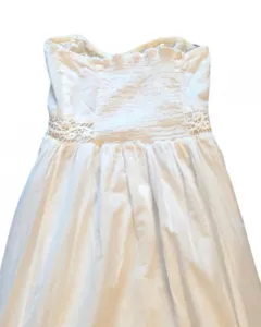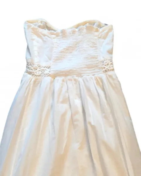 Vestido de playa blanco sin hombros. Esto lindo vestido de playa viene bordado de la parte de abajo, está en perfecto estado va garantizado. 🤩