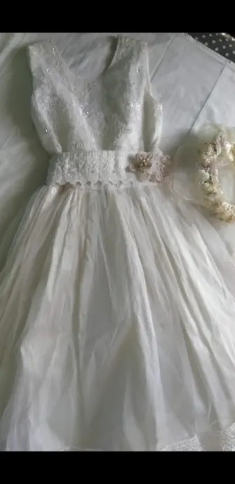 Vestido de primera comunión Hueso T/12 en excelente estadoSolo se uso en misa y foto de pastel incluye tocado.