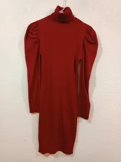 Vestido de Punto. Vestido de Punto calientito, manga de globo y cuello de tortuga, color rojo quemado.