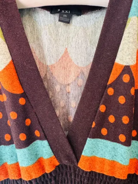Vestido de punto colores estilo boho. Los vestidos de punto se pueden usar de muchas formas!! Muy bonito vestido de punto en combinación de colores a fines. Usado una sola vez. Sin detalles. Lo puedes usar con unas lindas botas de tacón y agregar una bufanda con estilo bohemio. Marca cintura ya que tiene elástico. Muy cómodo. Más opciones en mi clóset. Perfecto para el otoño.