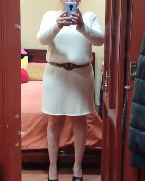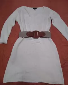 Bonito vestido de punto grueso, es pesado pero nada incómodo ni estorboso, se usa de dos formas, suelto o con un cinturón y de las dos se ve muy padre, dice talla cero, pero soy Mediana y me queda bien*Medidas: Hombros 48cm. Axilas 50cm. Largo 95cm*Sin detalles*No incluye cinturón*GRACIAS POR TU PREFERENCIA*