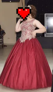 Vestido de quiceañera. Hermoso vestido color vino, talla L , blusa tipo corset que se puede ajustar y moldear el cuerpo, esponja muy bonito con una crinolina, detalles dorados en la blusa.