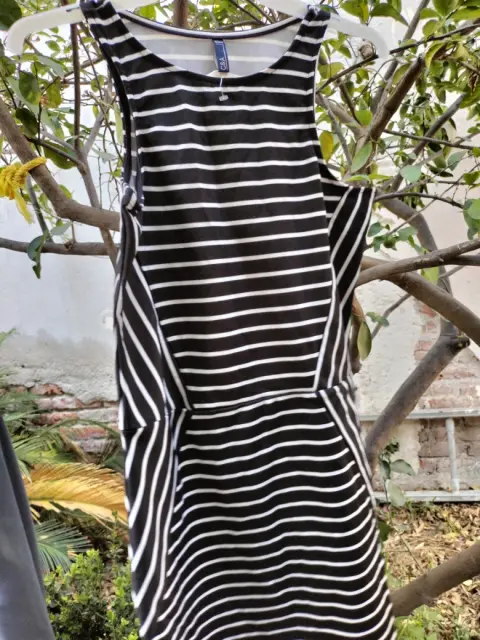 Vestido de Rayas. Vestido Rayado , tono blanco con negro, pegado el corte es arriba de la rodilla