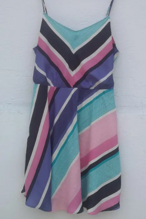 Vestido sin mangas, rayado con forro, dice talla 16 pero queda perfecto a G 10 o 12