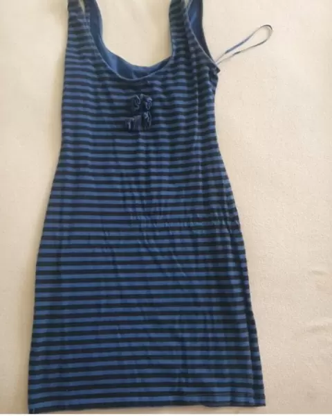 Vestido de rayas ajustado. Vestido ajustado de rayas, estira muy poco, sin mangas , viene muy corto es poco elastico . Atras tiene 2 moñitos como detalle. La talla dice M pero viene reducido como.SMedidas:Axila a axila: 32 cmCintura: 29 cmLargo desde el cuello : 49 cm