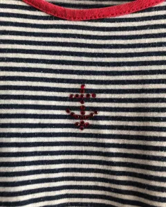 Vestido de rayas azul con blanco, largo 55cm, axila a axila 31cm, marca Push, talla 5/6