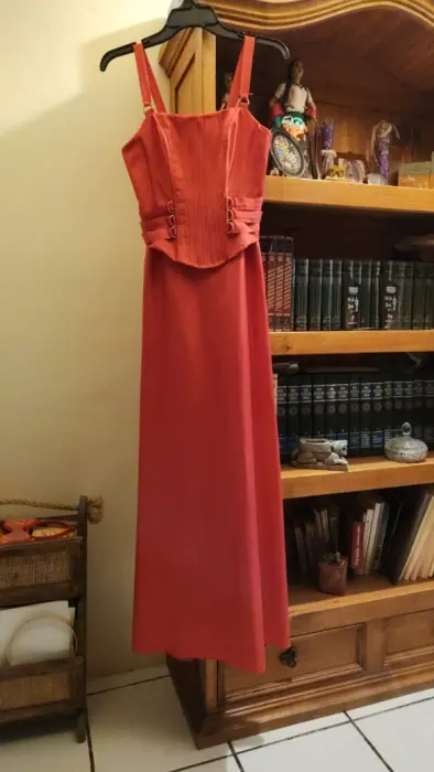 Vestido de satín rosa, con tiras y broches a los lados, talla 7 petite