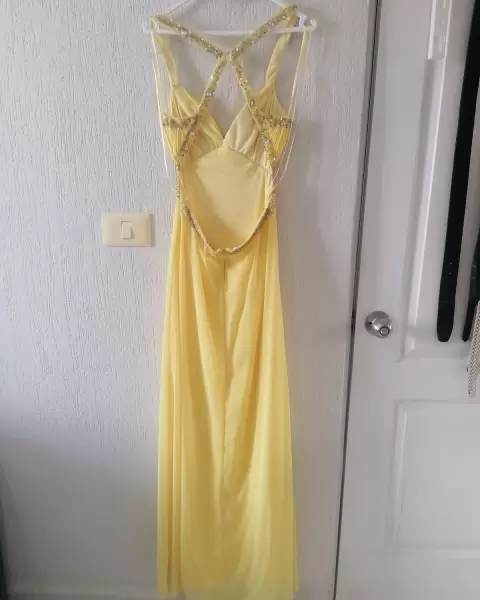 Vestido de segunda mano. Vestido con pedrería, de escote para busto pequeño, talla 3.