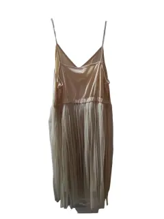 Vestido de tirantes. Tal como en las fotos solo se probó pero se guardó con ropa q se usa Pecho 104 largo 118 cintura 82 Color albaricoque nude
