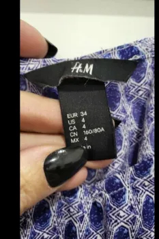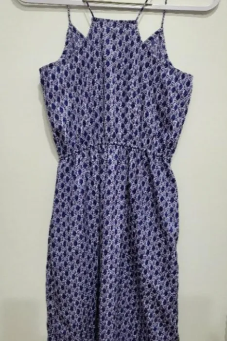 Vestido de tirantes marca H&MEl estampado es color azulTiene resorte en la cinturaTiene bolsas100% poliésterTalla 4. Medidas aproximadas: 37cm de axila a axila,27cm de cintura (sin estirar), 107cm de largo desdeel hombro.*TODAS MIS PRENDAS SE DESINFECTAN CON LYSOLLAVANDERIA PARA TU MAYOR TRANQUILIDAD*
