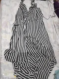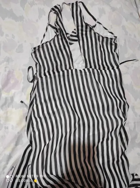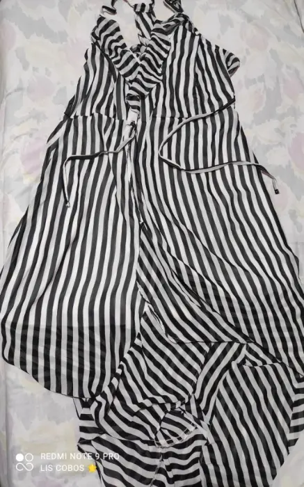 Vestido de tirantes, gasa con forro. Vestido talla G pero viene muy reducido y no estira,le podría quedar a alguien talla M o Ch , tiene un pequeño forro y una mancha que es un punto que con una tallada se le quita