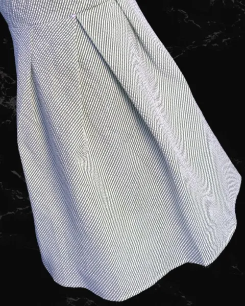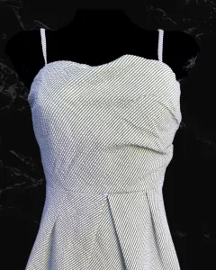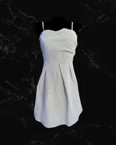 Vestidito con tirantes en líneas azules, tela corrugada con excelente caída que hace resaltar la cintura.