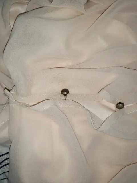 Hermoso Vestido corto, color crema, tela delgada con forro, botones discretos de un lado