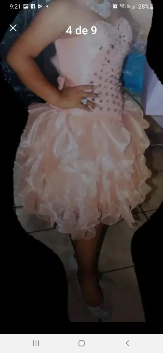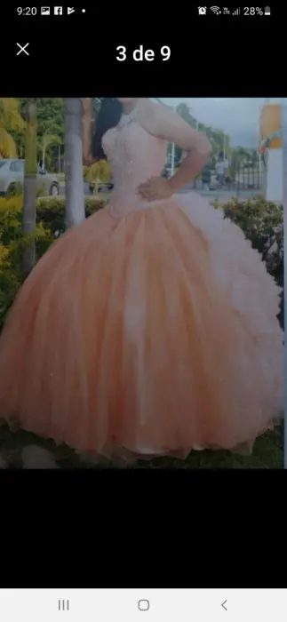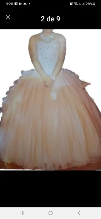 Vestido de XV años color coral, talla 32 a 34 en dos piezas falda amplia y blusa tipo corset , ajustable, incluye falda corta tipo tutu, almohada decorada, ramo.