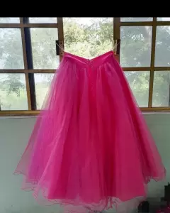 Es color Rosa neónCuenta con*ARO*DECORACIÓN EN EL PELO*PLUMA*COGUIN*FALDA DESMONTABLE *FALDA PEQUEÑA CON COLA DE PATO *TENIS ROSA DEL #4 PLANTILLA ALTA