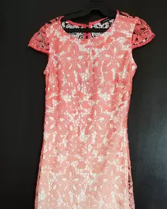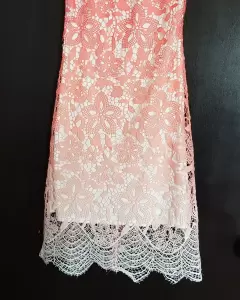 Vestido de encaje degradado en tonos coral a blanco, tiene forro por lo que es cómodo y ligero.