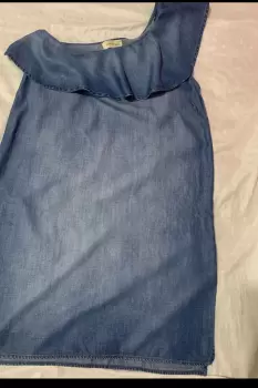 Vestido Denim a un hombro Súper cómodo es algo corto, arriba de la rodilla
