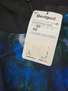 Vestido Desigual talla M, ultraligero, ideal para temporada de calor, cuello redondo, manga 3/4, largo asimétrico, máslargo parte posterior. Tela no estira. Medidas pecho 98 cm. Cintura 78cm, cadera 92 cm, hombros 38 cm.