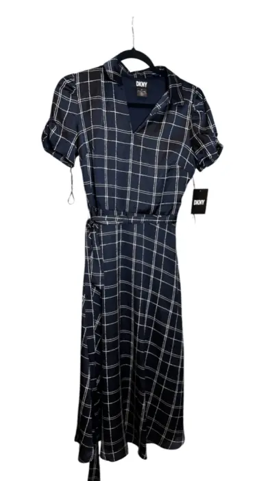 Vestido DKNI. Vestido Camisero DKNY de Cuadros - Estilo Casual y EleganteEste vestido camisero de DKNY en un elegante patrón de cuadros es la prenda perfecta para un look casual con un toque sofisticado. Con un corte cruzado y cinturón ajustable, estiliza la figura mientras que el diseño de mangas cortas añade comodidad y versatilidad.Marca: DKNY.Corte: Cruzado con cinturón ajustable para realzar la cintura.Talla: 6Ideal para el día a día o para una salida casual elegante.Este vestido es la elección perfecta para quienes buscan un estilo chic y cómodo, ideal para múltiples ocasiones. ¡No te quedes sin él!