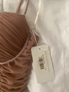 Vestido nuevo, con etiqueta, rosa claro, drapeado. Con copas incluidas, el color no se hace justicia en la foto.
