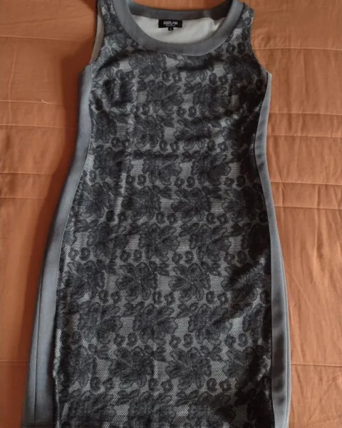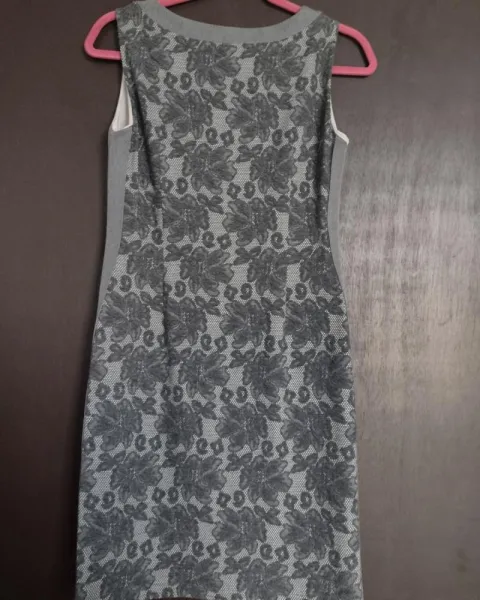 Vestido gris. Bordado marca Duplan permite. Talla 6. Queda a la rodilla. Con foro. Muy cómodo . Tela stretch.