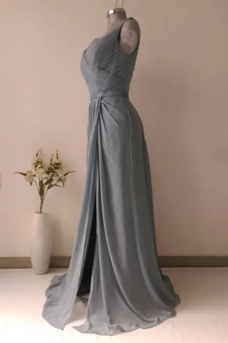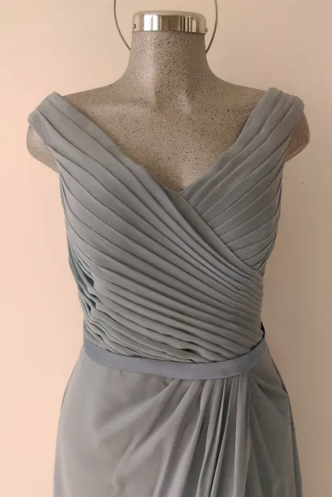 Vestido dusty blue. Fabuloso vestido color azul atardecer o Dustin Blue. De escote en V y corpiño con finos pliegues diagonales. Con falda con terminado en corte A con abertura. Corset en espaldaTela de gasa, no ajustable: 100% poliéster.Con forro.Marca Wedding DressTalla 14. GrandePecho 100-110 cmAxila/axila 44 cmCintura 88-92 cmCadera 110 cmLargo desde hombros 155 cmPrenda en perfecto estado ¡Como nueva!. Sin detalles. Se envía listo para su uso lavado y/o con tintorería de acuerdo a las indicaciones de su etiqueta.Listo para envió el mismo día de tu compra o día siguiente.Recomendación muy importante: Checar las medidas que se especifican en la descripción, que estén dentro de las medidas de tu silueta para que esta prenda te quede perfecta.