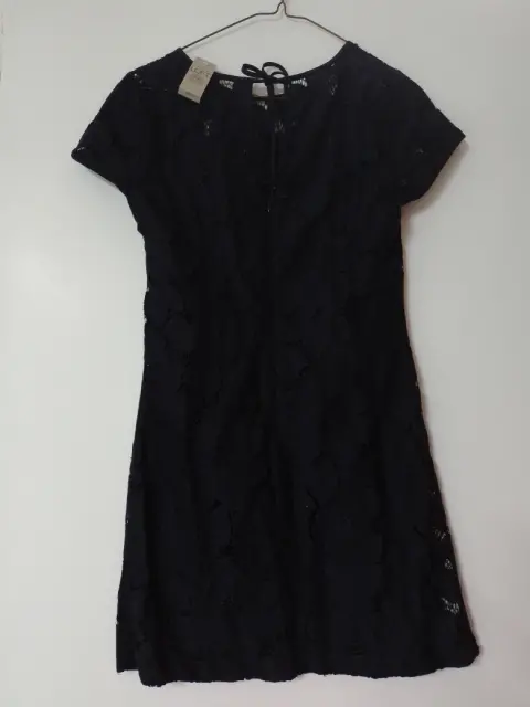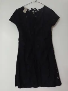 Vestido corto, elegante,a azul marino, manga corta, totalmente nuevo, con etiqueta, flores caladas T S