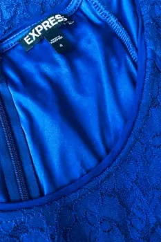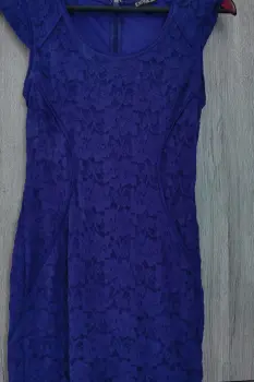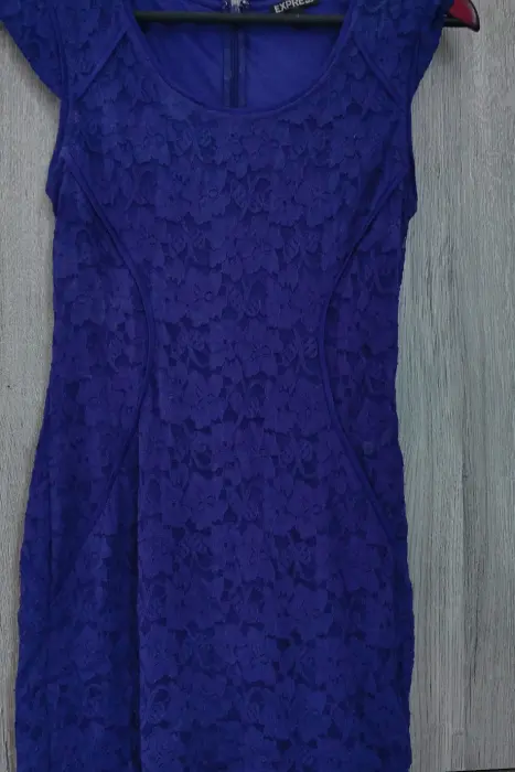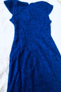 Vestido Elegante Azul Rey Entallado chic. Vestido stretch americano talla chica (4) / SMarca Express cierre en la parte de atrásTejido de encaje de gran elasticidad.NOTA: en la ultima foto adjunto evidencia en en la parte de atrás a la altura de la espalda tiene como el encaje estirado es el único detalle que tiene, no se nota