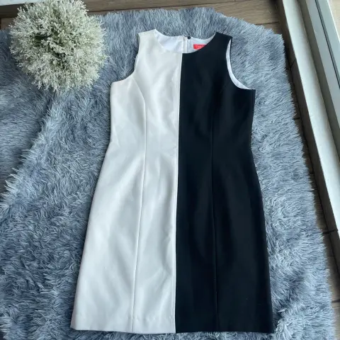 Vestido elegante blanco con negro. Bonito vestido formal en la tercera foto se ve un detalle, pero es mínimo.