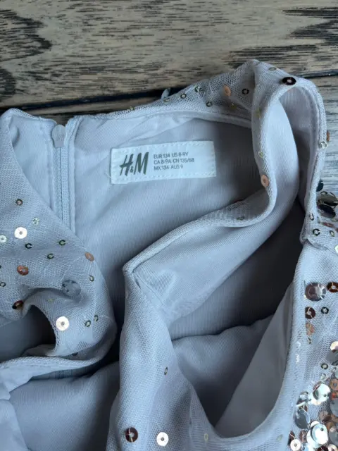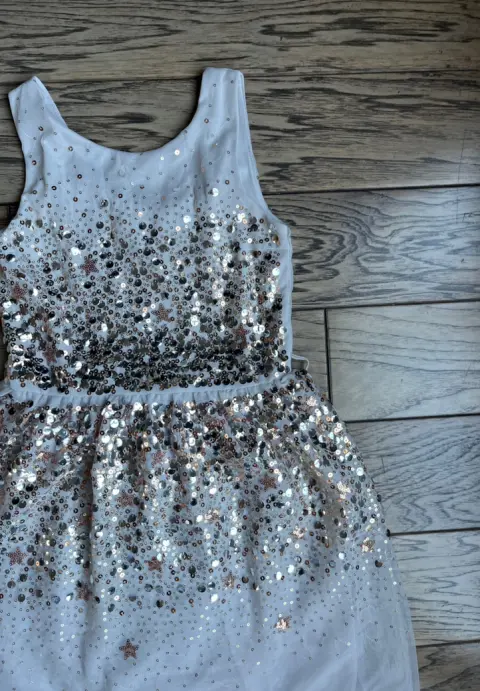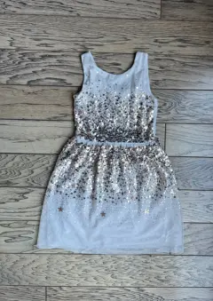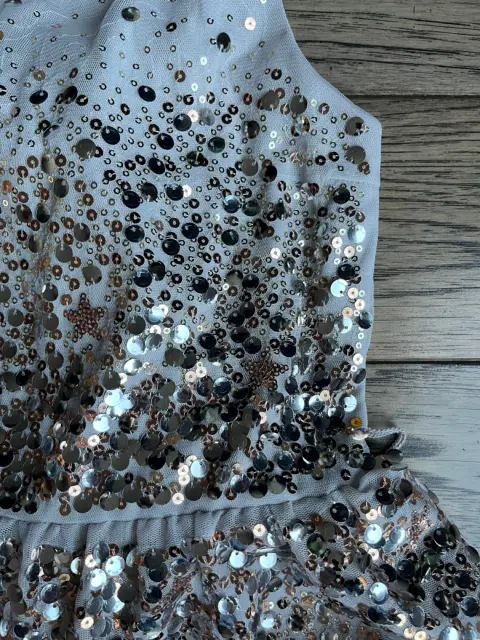 Súper elegante vestido para fiesta de niña con lentejuela Color gris claro Talla 8-9 años Es una joya de vestido Solo se uso una vez y está prácticamente nuevo