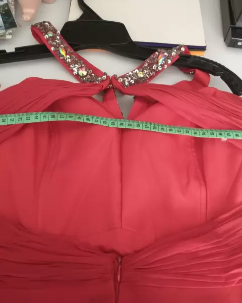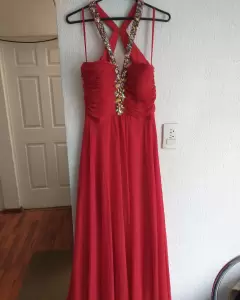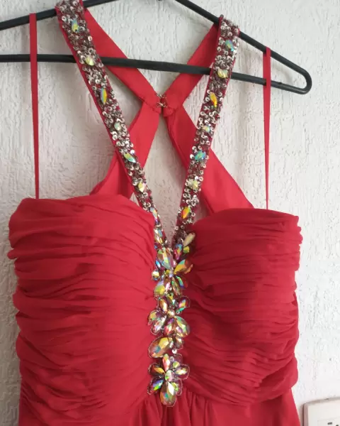 Hermoso vestido elegante color rojo, con bonitos detalles de pedrería enfrente. Se utilizó una vez.