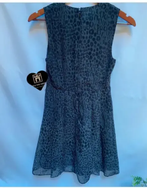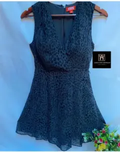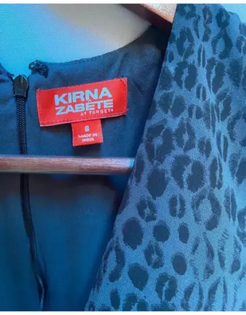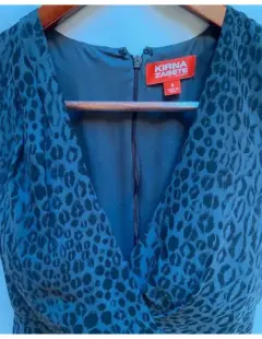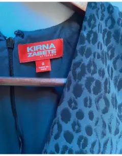 Vestido en chiffon estampado Animal Print. Vestido en chiffon estampado Animal Print, escote cruzado en "V". Drapeado en el hombro derecho. Corte a la cintura, falda tableado en los costados por ara mejor amplitud dando un falda línea "A". Cierre invisible en la espalda. Talla: 6 Marca: KIRNA ZABATE AT TARGET.