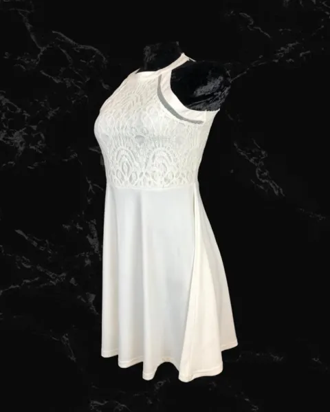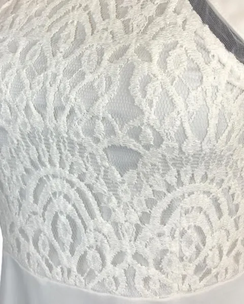 Vestido con la parte superior en crochet, sin hombros es muy elegante en color blanco, ideal para eventos en playa.
