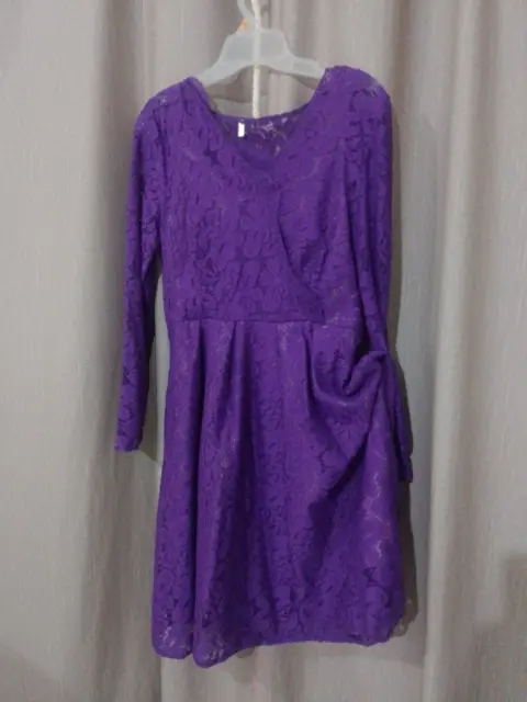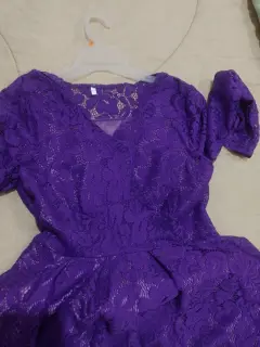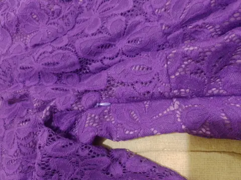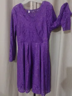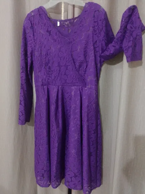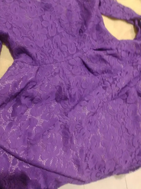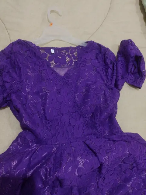 Vestido encaje morado. Vestido de encaje talla grande con forro es de encaje en las mangas no tiene forro. 97 cms de larcoTiene cierre lateral oculto
